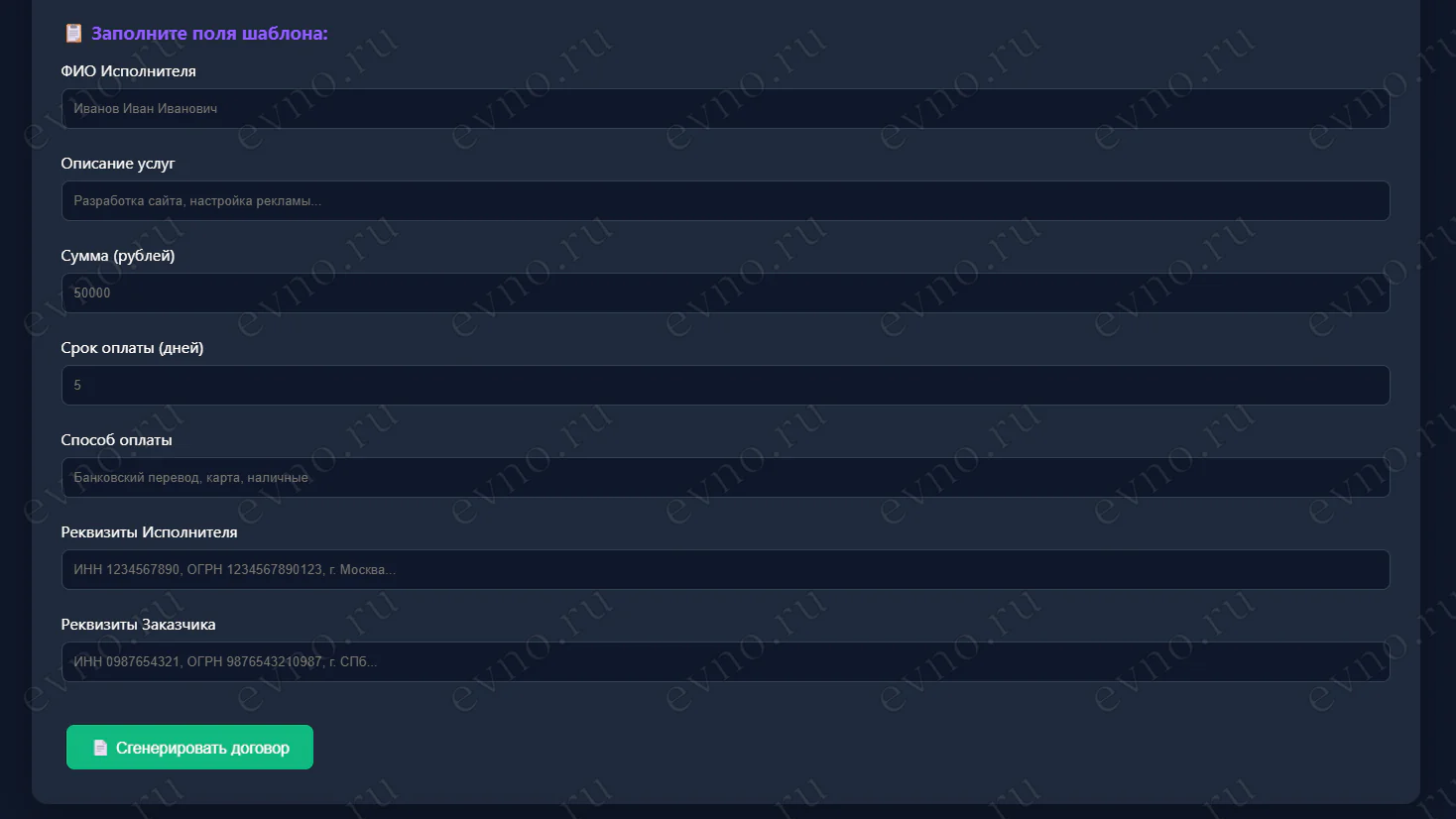 📄 CONTRACT GENERATOR — ГЕНЕРАТОР ДОГОВОРОВ