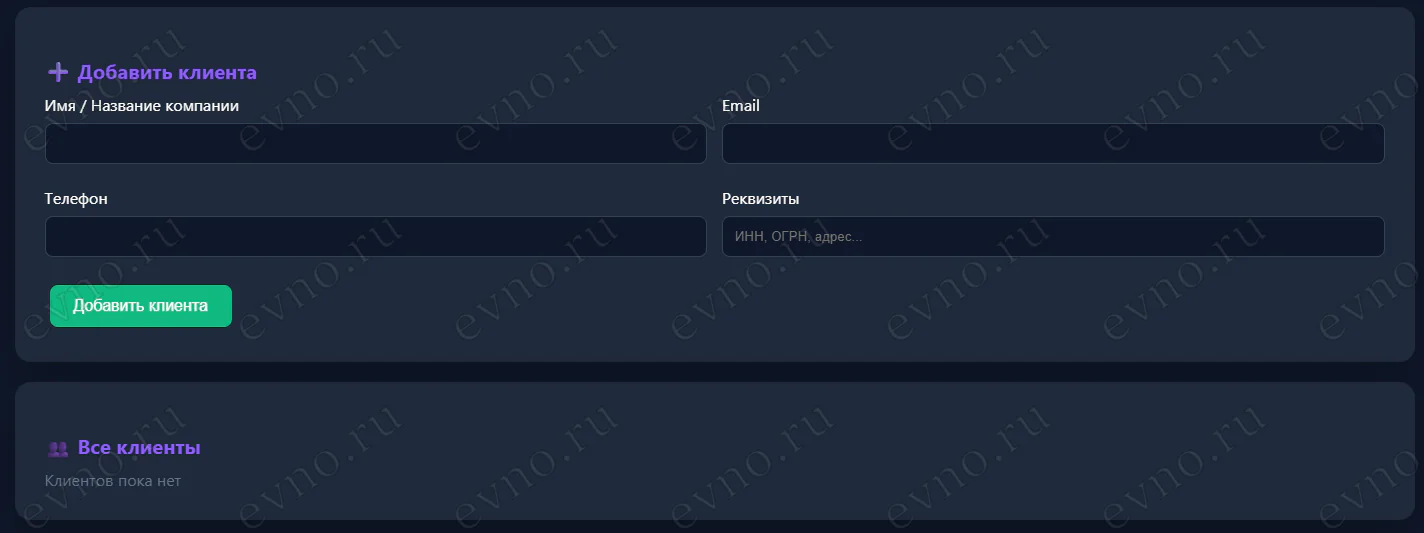 • Все поля на русском языке с подсказками