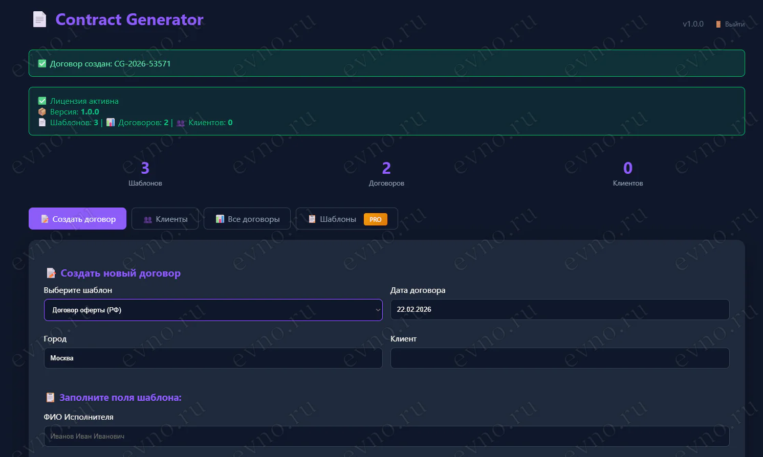 📄 CONTRACT GENERATOR — ГЕНЕРАТОР ДОГОВОРОВ